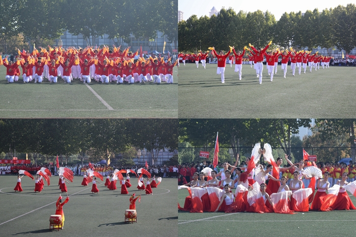 校领导亲自为舞龙舞狮点睛后,各体艺俱乐部为全场师生带来了精彩绝伦的文艺表演,观众席掌声鸣动。从《龙狮、武术——武彩飞扬》的雄浑激昂到《啦啦操——歌唱祖国》的青春朝气,再到《大众操——活力悦动》的热情四溢,直至《FD舞蹈——象王行》的大气磅礴,每一幕都展现了学子们的多才多艺与青春风采,为运动会注入了无限激情与活力。