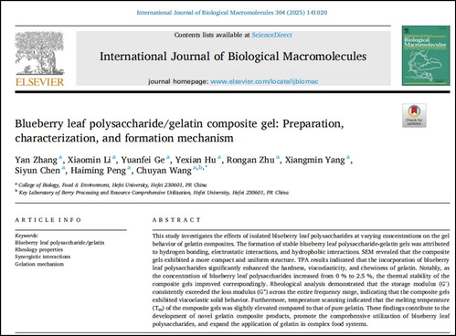 2025年2月,日韩欧美福利视频_黑人巨大人精品欧美三区_欧美成人另类人妖_欧美在线精品一区二区三区_欧美一区二区三区性视频_日韩精品欧美视频_性欧美极品xxxx欧美一区二区生物食品与环境学院王储炎教授课题组在International Journal of Biological Macromolecules(1区TOP,IF=7.7)发表了题为“Blueberry leaf polysaccharide/gelatin composite gel: Preparation, characterization, and formation mechanism”的论文。王储炎教授为通讯作者,硕士研究生张岩为第一作者。