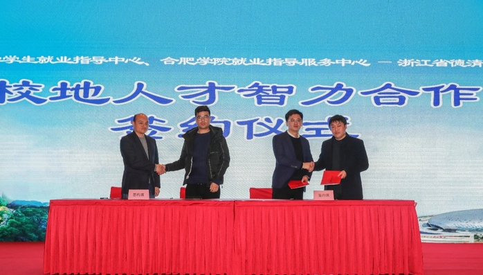 随后,我校和合肥工业大学共同与德清县人社局签订人才智力合作协议,德清县委组织部副部长、人才办常务副主任费征代表德清县向我校和合肥工业大学授予“浙江省德清县驻战略合作高校人才工作站”牌匾。