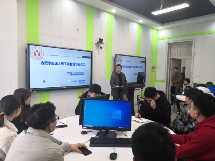 此次线上线下混合式毕业实习是我校实践教学的一种全新创新模式,依托校外实习基地以及我校多媒体智慧教室,搭建了线上线下混合式教学平台。结合我校人才培养要求以及先进制造工程学院的毕业实习安排,借助线上网络摄像设备,学校和企业架起双向互动的桥梁。