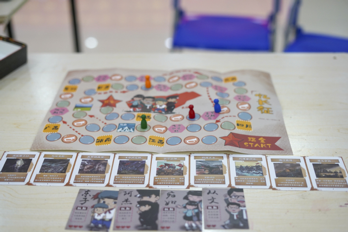 重走长征路。团队成员进行了红色飞行棋游戏。从瑞金出发,按照红军长征的时间顺序进行设计,每次安排四名游戏参与者,到达点位后需要完成不同的任务。每条路线的任务环环相扣,解密、闯关,在亲身参与和沉浸体验中学党史、强信念,传承和弘扬红色精神。