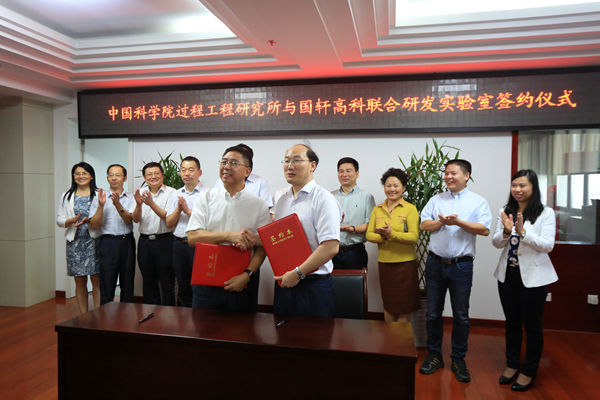 随后,在与会领导的共同见证下,中科院过程工程研究所与国轩高科动力能源股份公司签订了关于《5V高压锂离子电池电解液研发》项目的合作协议。王翔副市长、张锁江所长与蔡敬民书记共同为联合研发基地揭牌。