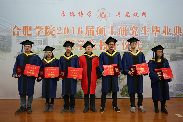 毕业典礼在庄严的国歌声中开始。合肥学院硕士研究生学位评定委员会委员、校党委副书记丁明教授首先宣读了合肥学院硕士研究生学位评定委员会“关于授予2016届环境工程专业徐芳丽等29名研究生工程硕士学位的决定”和 “关于表彰合肥学院2016届环境工程专业硕士研究生科研成果奖、优秀毕业生、优秀毕业论文和‘合大环保奖学金’获得者的决定”。