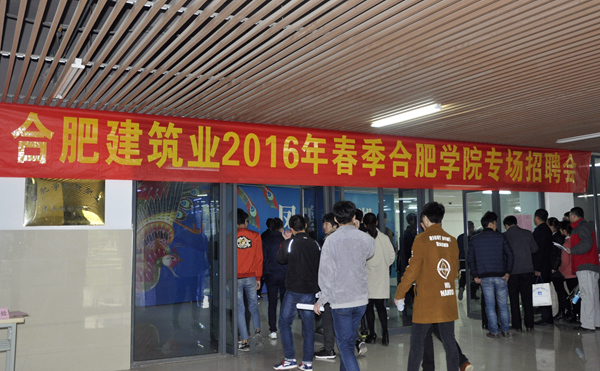 3月18日,我校2016届毕业生春季校园双选会第一场在图书馆一楼就业招聘大厅和中、西两个自习室顺利举行,两百余家企业单位来校招聘。我校及附近其他高校3000多名毕业生参加。学工部领导、老师及各系党总支书记、副书记、毕业班辅导员来到现场,与参会企业和毕业生交流,为学生推介就业资源并提出个性化建议。双选会刚结束,下午一百余由合肥建委组织的建筑类企业在图书馆一楼就业招聘大厅及西自习室又顺利举行了专场招聘会。