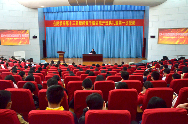 3月27日,合肥学院第十三届新闻骨干培训班开班典礼暨第一次授课在图书馆学术报告厅举行。校党委委员、宣传部部长刘樟树受邀出席,来自全校70余个社团、校级组织、14个院系的470余名培训班学员参加本次培训会。