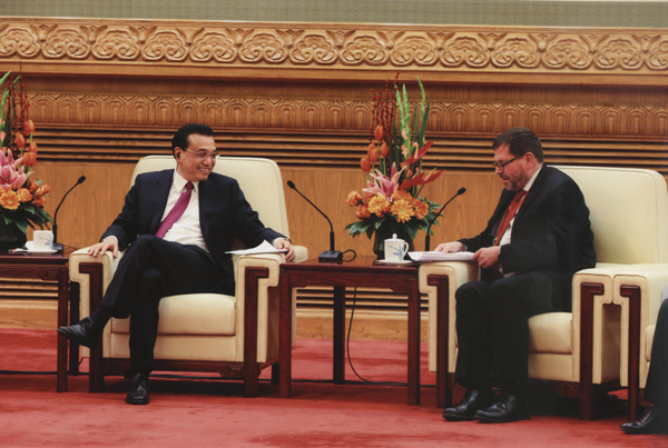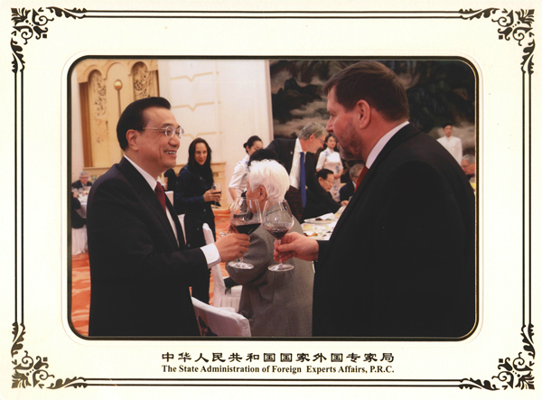 国务院总理李克强2月5日下午在人民大会堂亲切会见在华工作的部分外国专家并同他们座谈。我校客座教授、德国施特拉尔松德应用科学大学校长法尔克·霍恩、我校韩籍教授赵诚惠、朴南奎夫妇,作为在皖外国专家代表出席了座谈,其中霍恩教授作为仅有的四位发言代表之一,重点就“中国制造2025”与“应用型高等教育改革”作了发言,并就我校“中德教育合作示范基地”筹建情况作了简要汇报。(相关信息参见新华社报道:http://news.xinhuanet.com/politics/2016-02/05/c_1118005467.htm )