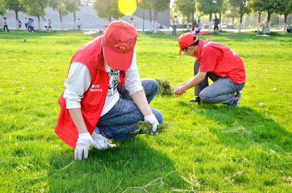 春季是万物生长的季节,清明过后,气温回升,学校各处绿植的长势更是呈现出一片欣欣向荣之景。但在绿茵遍地的同时,各类杂草却潜藏其间,借势疯长,有碍于校园绿化。基于此现状,4月9日至10日,我校近60名志愿者响应校团委“爱校护校”的号召,在校青年志愿者联合会的组织下,对二区35栋前的草坪展开了集中清理工作。