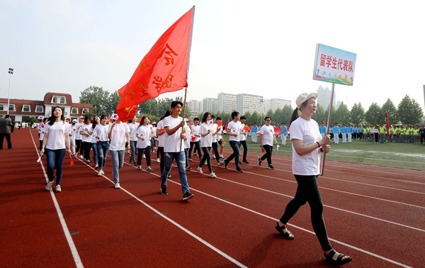 开幕式中,校方阵队、14个系部方阵队、留学生方阵队、研究生代表队和教职工方阵队依次走过主席台。方阵队伴着激扬的乐曲,昂首阔步,喊着振奋人心的口号,展现出我校师生勇往直前、积极向上的精神面貌。整齐的服装和独特的队形设计,展示出他们别样的风貌与精彩。