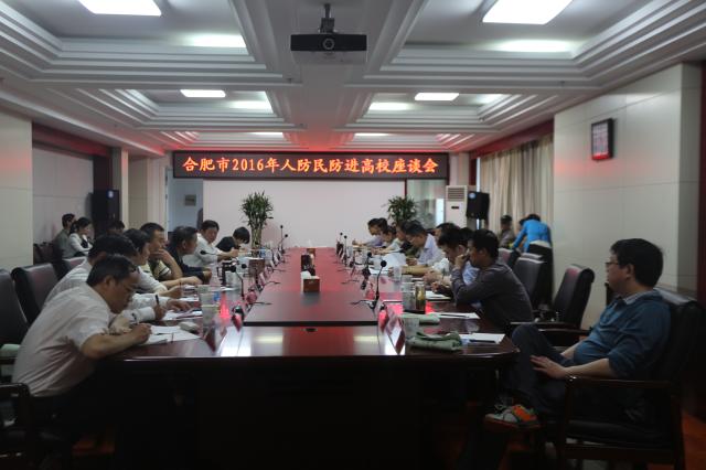 上午十点,合肥市2016年“人防民防进高校”座谈会在行政楼九楼东会议室举行,市人防办领导班子、机关各处室及部分高校事业负责人、各县区、开发区人防民防负责人出席会议。校党委副书记丁明等参加会议,会议由人防办夏庆明主持。