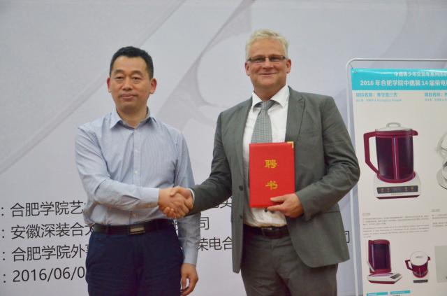 张文兵院长向提斯·克鲁格教授颁发了合肥学院客座教授聘任证书。