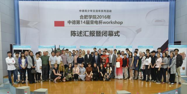 本届WORKSHOP合作项目逢中德青少年交流年,第二阶段的文化交流活动,艺术设计系邀请了安徽省京剧院专业艺术家表演了文艺节目,精彩的水袖、京剧靠旗、川剧变脸表演轮番上演,会场内掌声此起彼伏,气氛热烈。会后,德国老师和同学们纷纷和表演艺术家合影留念,表示领略了博大精深的中国文化,活动很有纪念意义,第十四次WORKSHOP项目虽然结束了,但WORKSHOP项目需要长期进行,我们已经开始期待明年WORKSHOP的到来。