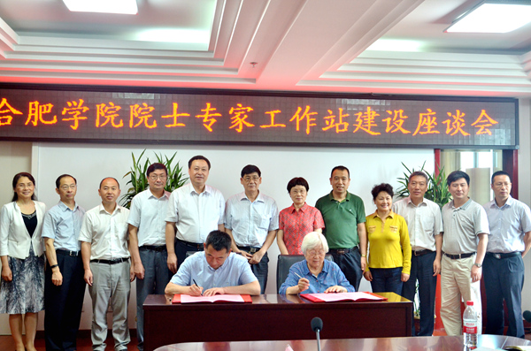 7月8日,合肥学院水环境治理及污染控制院士专家工作站建设工作会议于行政楼九楼会议室成功召开。中国工程院院士、研究员张懿,中科院过程工程研究所原党委副书记、副院长江明一行,安徽省科学技术厅党组成员、巡视员任鸣,合肥市政府副秘书长、环巢湖综合治理领导小组办公室主任高斌友,合肥市环保局局长王斌等,中国科学院合肥物质科学研究院副院长院士刘建国,中国科学院合肥物质科学研究院安徽光机所所长、中国工程院院士刘文清,合肥学院党委书记蔡敬民、校长张文兵、纪委书记洪家友、副校长陈秀等参加会议。会议由张文兵主持。