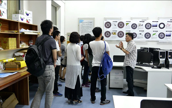 对合肥学院和艺术设计系的情况作了全面的介绍,并带来同学们参观了产学研中心的师生工作室、图文输出中心、展厅及学生作品等。期间,同学们兴趣浓厚,主动提出一些实践教学和学习的问题,谢海涛主任一一作了解答。