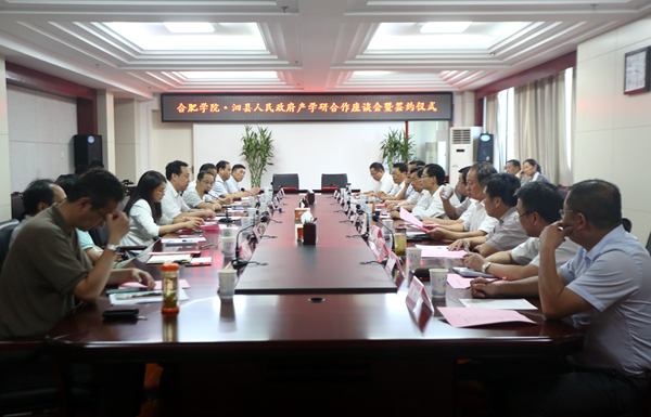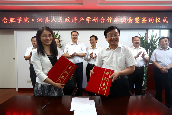 9月18日,合肥学院与泗县人民政府产学研合作座谈会暨签约仪式在行政楼九楼东会议室顺利举行。泗县县委书记张志强,县委副书记、县长王法立,人大常委会主任刘中平等一行到访我校,我校党委书记蔡敬民、副院长陈秀、督导员郑永红等出席座谈会,纪委书记洪家友主持会议。陈秀与王法立代表双方签署了《合肥学院泗县人民政府产学研战略合作协议书》,标志着合肥学院与泗县人民政府的深度交流合作迈出了坚实而重要的一步。