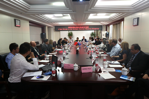 蔡敬民指出,合肥学院是一所国际化程度较高的大学,同德国、韩国、俄罗斯等多国高校合作办学经验丰富。我校积极学习国外高校的应用型办学理念,并进行实践,发展的应用型人才培养模式也得到了国内教育界的认可,被誉为中国新建本科院校第一方阵的排头兵。他还向代表团一行介绍了我校中德合作教育示范基地建设以及在德国建立孔子学院的情况。蔡敬民表示,此次北领地教育代表团的来访将进一步推动两国高校的学习交流,我校对未来增强同澳大利亚高校交流合作充满信心与期待。
