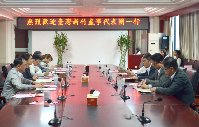 1012日,台湾新竹莱姆国际股份有限公司董事长郑宏辉、中华大学国际长解鸿年一行来访我校,我校副院长陈秀在行政楼九楼会议室热情的接待了来宾。双方就办学体制机制、教学管理、应用型人才培养模式改革等方面进行交流。合肥市委督察组督察员徐延安、合肥市台办副主任胡卫平等相关负责人陪同会见。