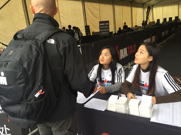 天气虽然有点寒冷,但是志愿者们服务的热情丝毫不减,开始的工作有些繁琐,进展较为缓慢,但是很快志愿者们就熟悉了工作流程,一个个行云流水般地完成一个个包裹的分装,在场的铁人三项组委会工作人员也纷纷向我校志愿者竖起夸赞的大拇指。第二天的运动员报道和信息录入志愿者们同样没有让大赛组委会失望,即使来报道的人员一大部分是国际参赛者,我校志愿者们以流利的外语水平、出色的工作能力和友善的服务态度确保了成功地完成了运动员的报道任务。