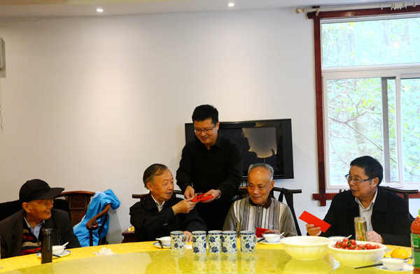 在红军长征胜利80周年、中国共产党建党95周年和两国总理来访我校一周年之际,10月19日,党委组织部、离退休工作处为11位古稀70周岁、耄耋80周岁的离退休老同志举行集体祝寿活动,离退休工作处副处长丁增云、办公室主任洪波、3名学生记者和校医等全程陪同。