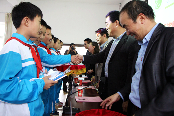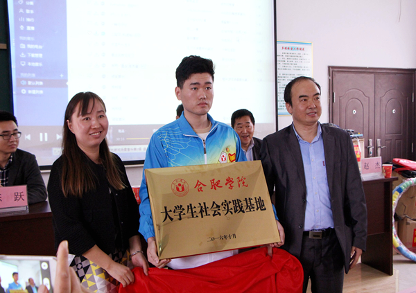 仪式上,出席领导和嘉宾共同为古城学区中心学校的学生们赠送了合肥学院志愿者们募集的书籍衣物和文体用品等,杜娟、赵杰共同为合肥学院大学生社会实践基地揭牌。