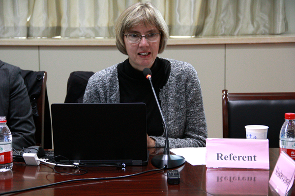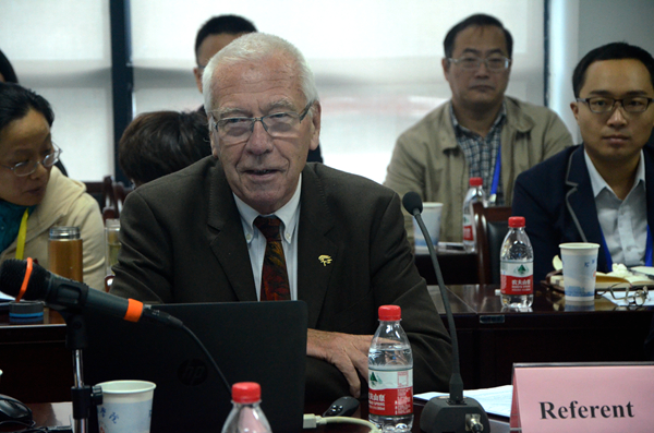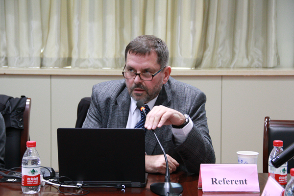 第一分会场交流由埃姆登/里尔应用科学大学校长盖尔哈德·克罗伊茨教授与邯郸学院校长马计斌教授、奥斯纳布吕克应用科学大学中德物流管理专业负责人米歇尔·舒勒教授主持。德累斯顿学院前校长迪特勒夫·克鲁普林教授、北京联合大学教务处长齐再前教授、奥斯纳布吕克应用科学大学中德物流管理专业负责人米歇尔·舒勒教授、China Window 国际智库首席研究员高鹏博士、铜陵学院校长倪国爱教授分别就应用型人才培养模式改革展开深入探讨。