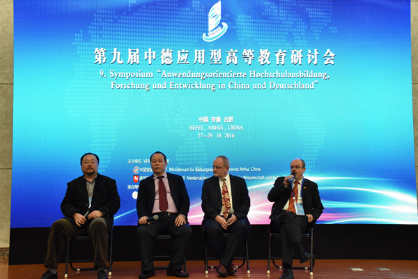 10月29日,第九届中德应用型高等教育研讨会5个分会场研讨在合肥学院召开。来自中德两国高校和科研院所的25位专家学者相聚一堂,围绕应用型人才培养模式改革、产学研合作及服务地方、国际交流及跨文化交流三个话题展开深入讨论。