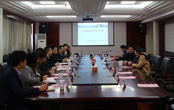 刘建中就模块化教学指出,改革需要教和学的统一,打破学科定式,从人才输出的角度,打造“双能”教师。他表示,人才培养建设要服务地方经济社会发展,从而促进发展的良性循环。最后,谭敏以电子系为例,结合德国的教学模式以及我校学子第二课堂的创新实践成果,阐述了我校模块化课程体系的构建思路以及在人才培养中的重要作用。白义香从我校各个阶段的发展状况、应用型人才培养模式改革等方面介绍了我校的整体情况