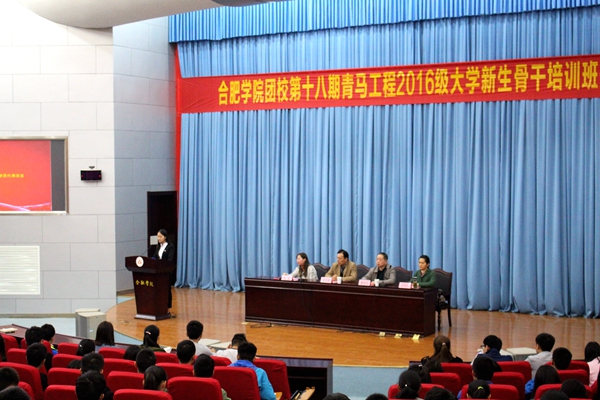 典礼伊始,全体起立奏唱团歌。随后,丁婧宣读《关于举办合肥学院团校第十八期青年马克思主义者培养工程2016级大学新生骨干培训班的通知》,明确了本期培训班的指导思想、课程安排和考核事项。2016级新生高麟珮作为青马班学员代表上台发言。她表示,自己会坚持党的指导思想,全面贯彻党的指导方针,作为一名学生干部,她会努力踏实地做好自己的本职工作,向党组织积极靠拢。