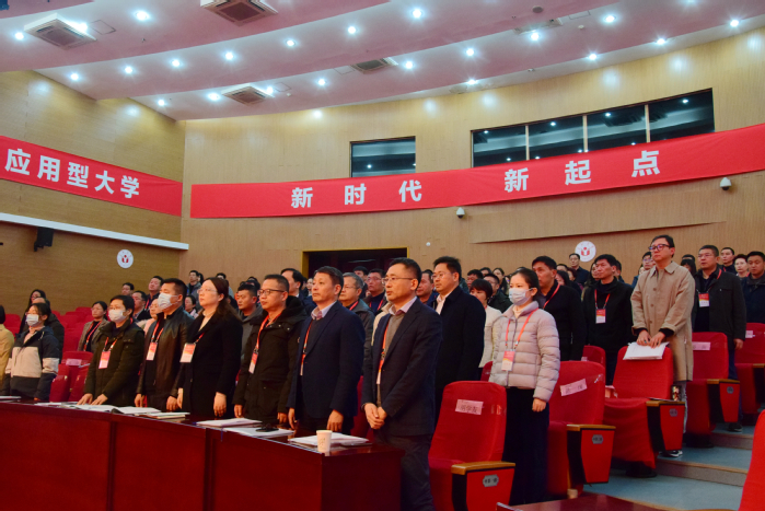 3月18日,学校在图书馆报告厅A厅召开第四届教职工、工会会员第二次代表大会。校领导王其东、吴春梅、陈秀、张思扬出席此次大会,全体代表参加会议。